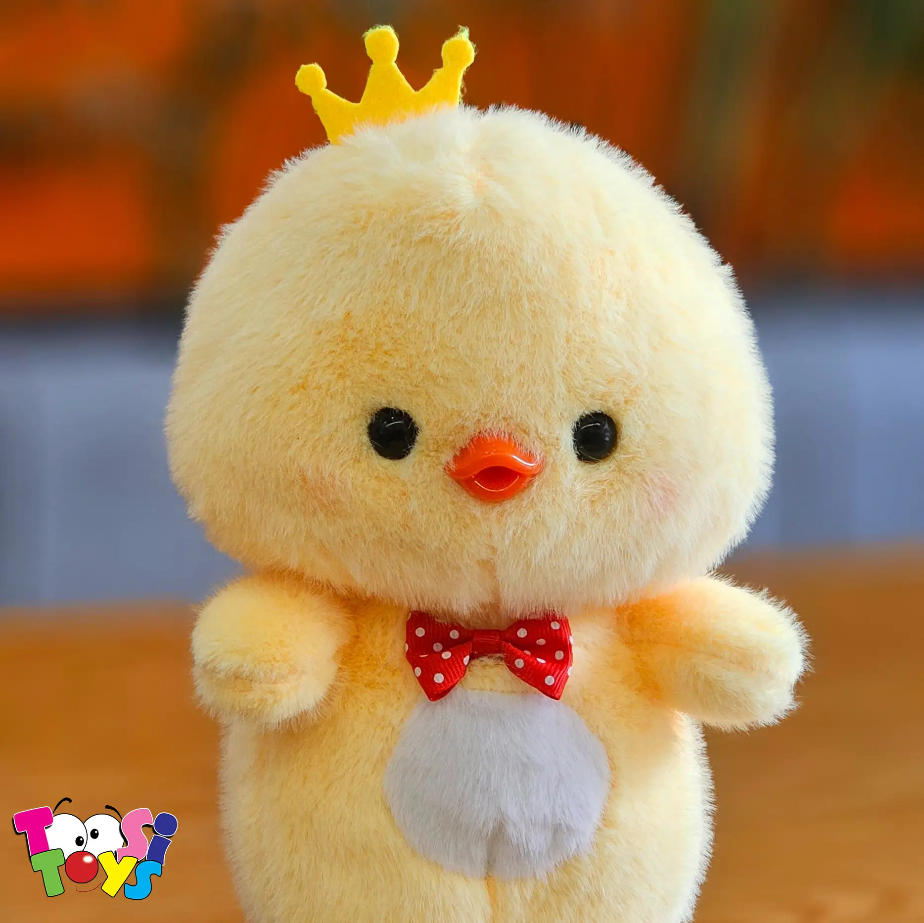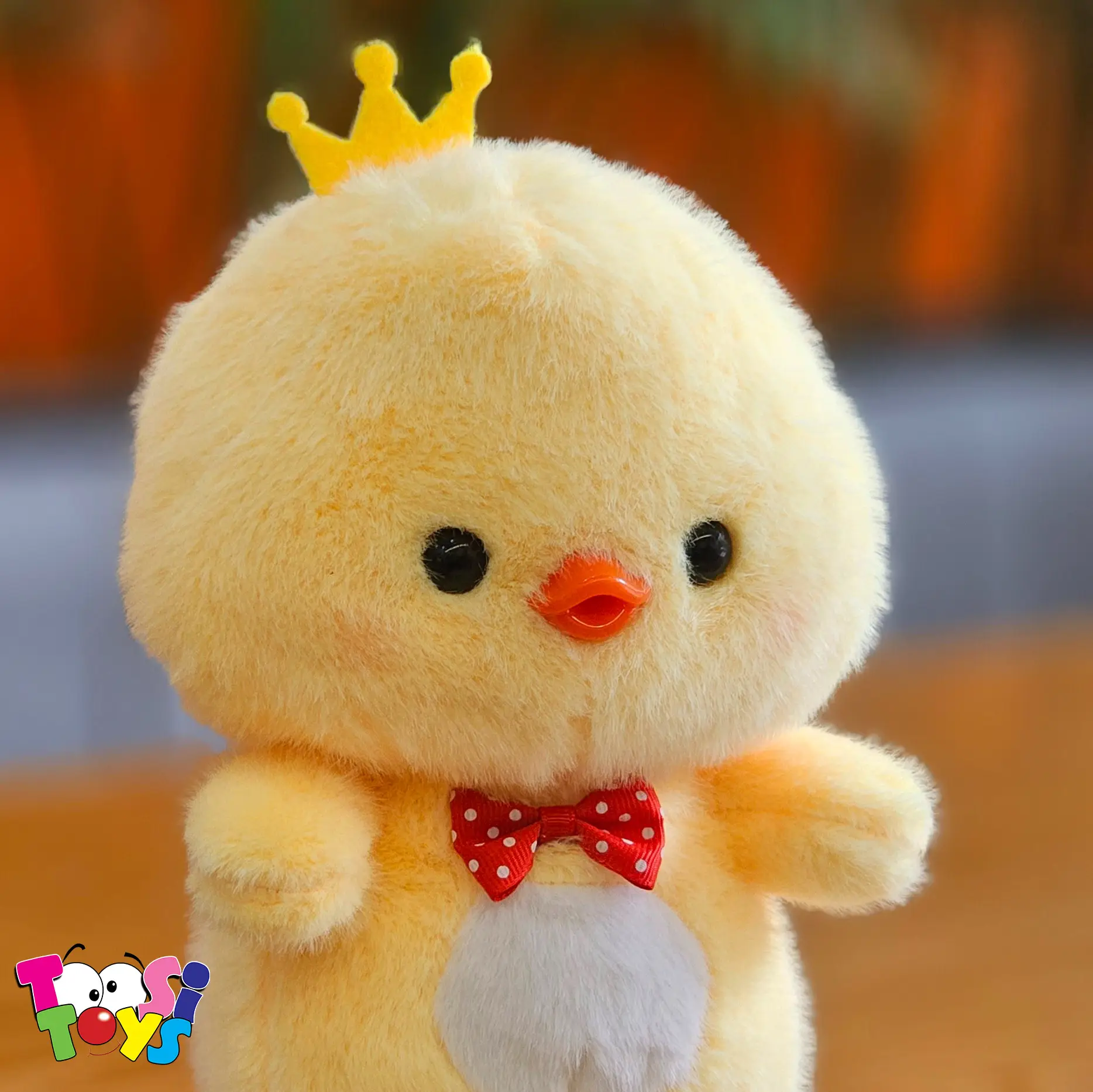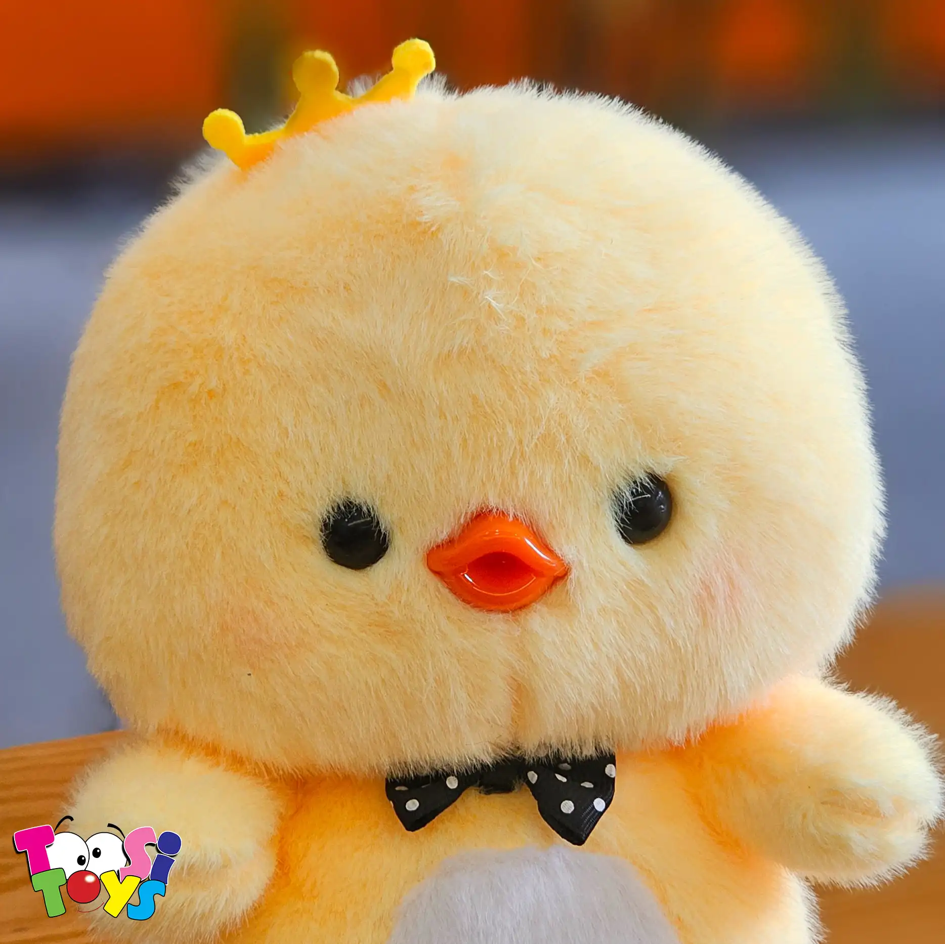 جوجه تاجدارِ نازنین با آن تاج طلایی کیوت و پاپیون کوچولو زیر گردنش، مثل یه شاهزاده کوچولو آمده تا وارد خونه هاتون بشود! این عروسک فوقالعاده نرم و لوکس با طراحی خاص و جزئیات ظریف مثل تاج و پاپیون بامزه ساخته شده است.