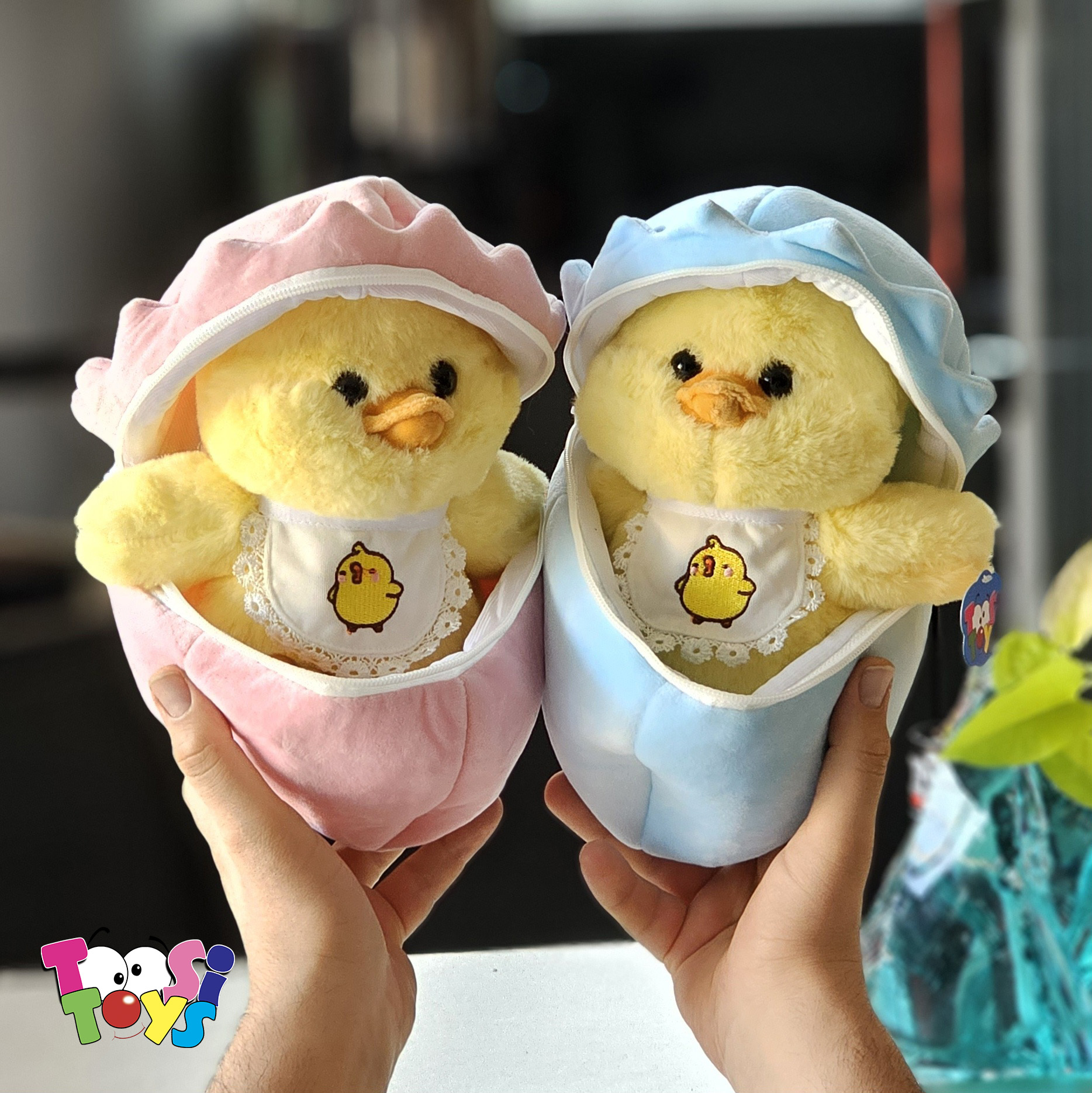 این جوجه های کوچولو بامزه با آن تخم مرغ های رنگی کیوت میتواند یک همراه همیشگی برای کوکان شما باشد. جوجه ها کاملا از داخل تخم مرغ رنگی بامزهاشان درمیآیند. و جنس نرم و لطیف آن باعث لذت بردن کودکان هنگام بازی با این جوجه بامزه میشود.