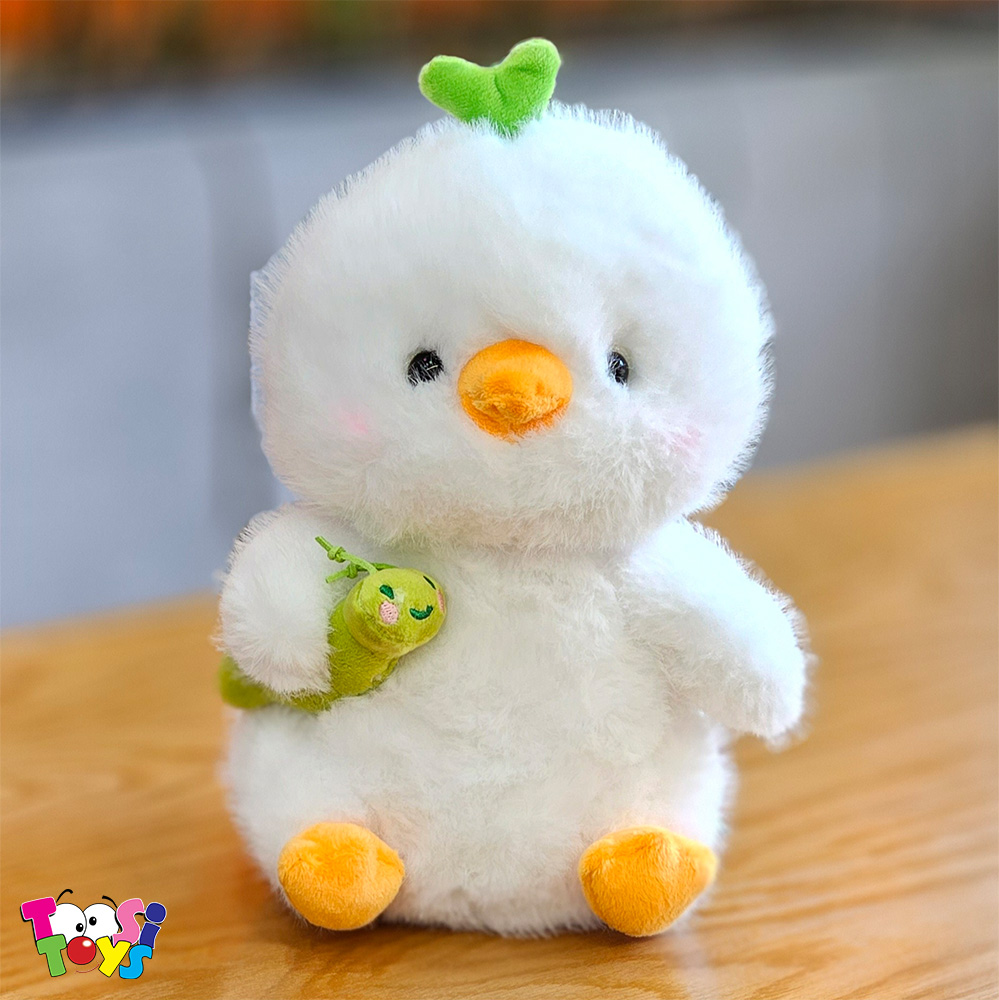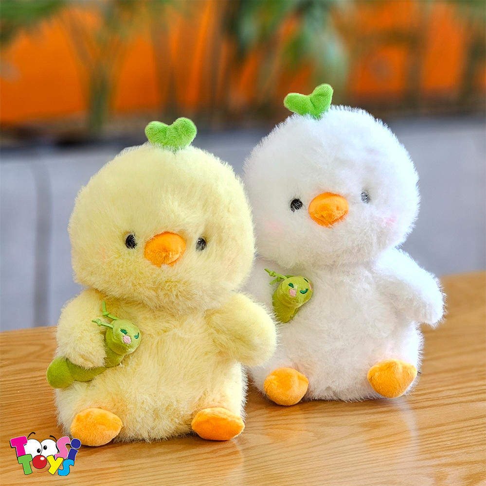 این عروسک جوجه ناز و کیوت با اون کرم بامزه داخل دستش میتواند یک همراه همیشگی برای کودکان باشد. جنس نرم و لطیف این عروسک باعث میشود که کودکان از بازی با آن لذت ببرند.