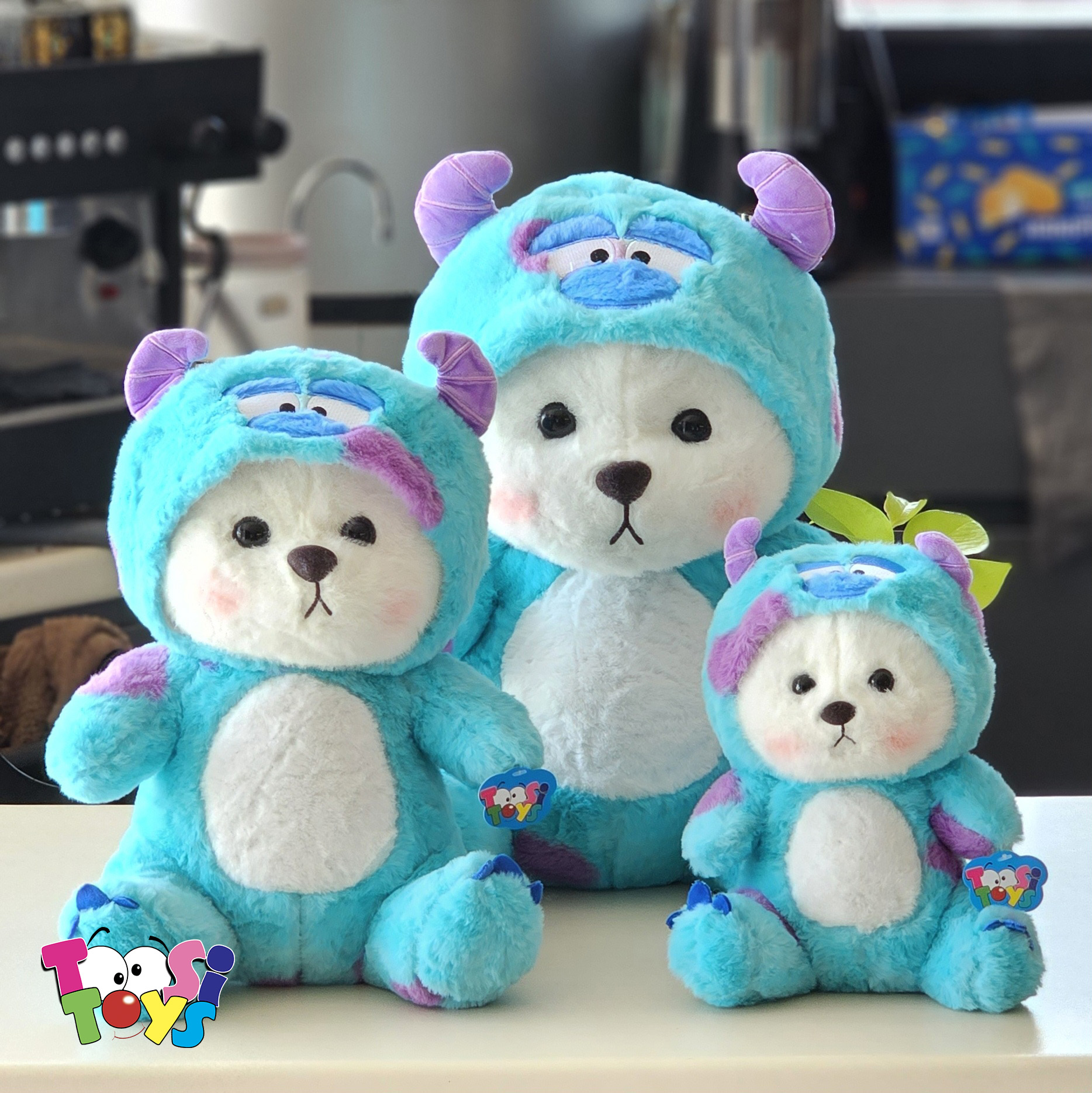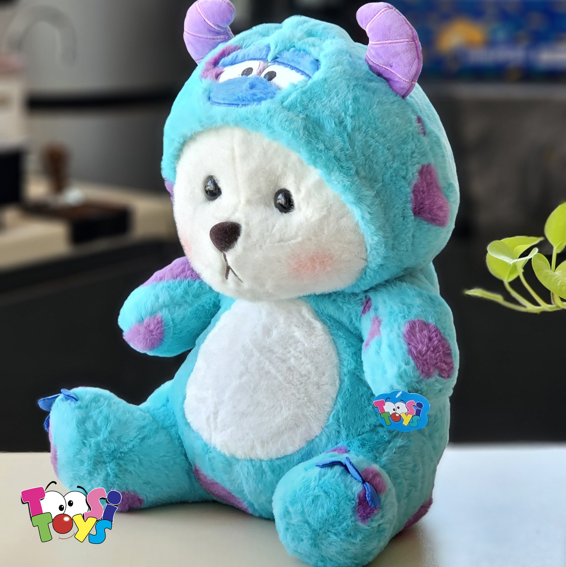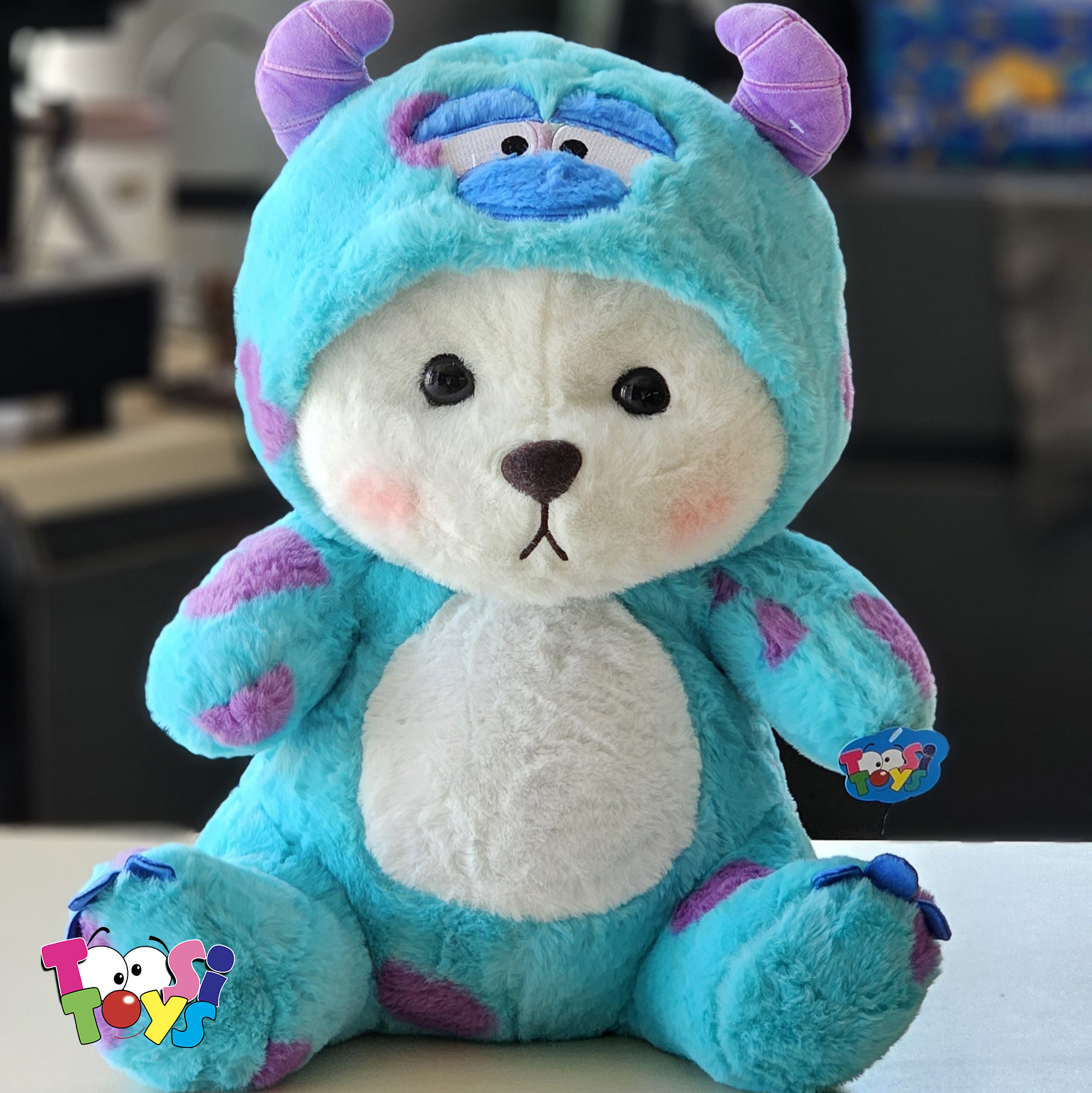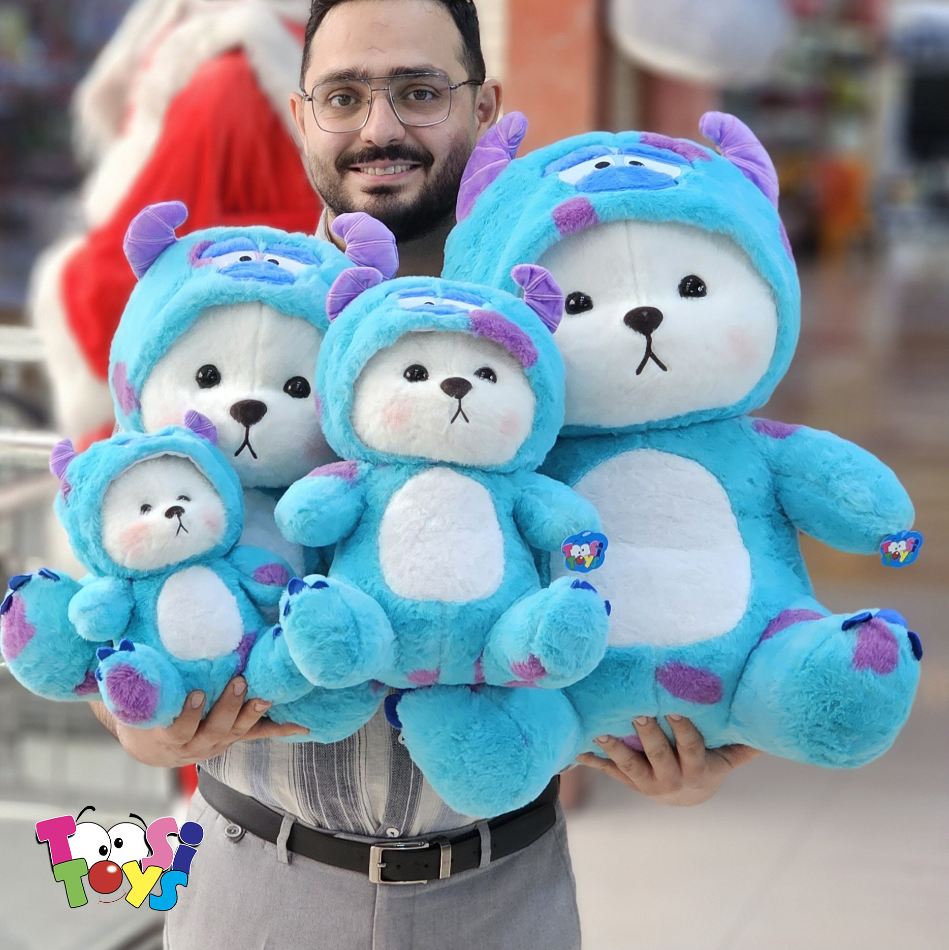 این خرس کیوت با آن لباس سالیوان بامزه دارای چهار سایز متفاوت است. و از کوچک به بزرگ مناسب هر سنی تولید شده است. کلاه بامزه سالیوانی که دارد را هم میتوان در سرش کرد و هم میتوان در آورد که باعث میشود دو شخصیت متفاوت داشته باشد.