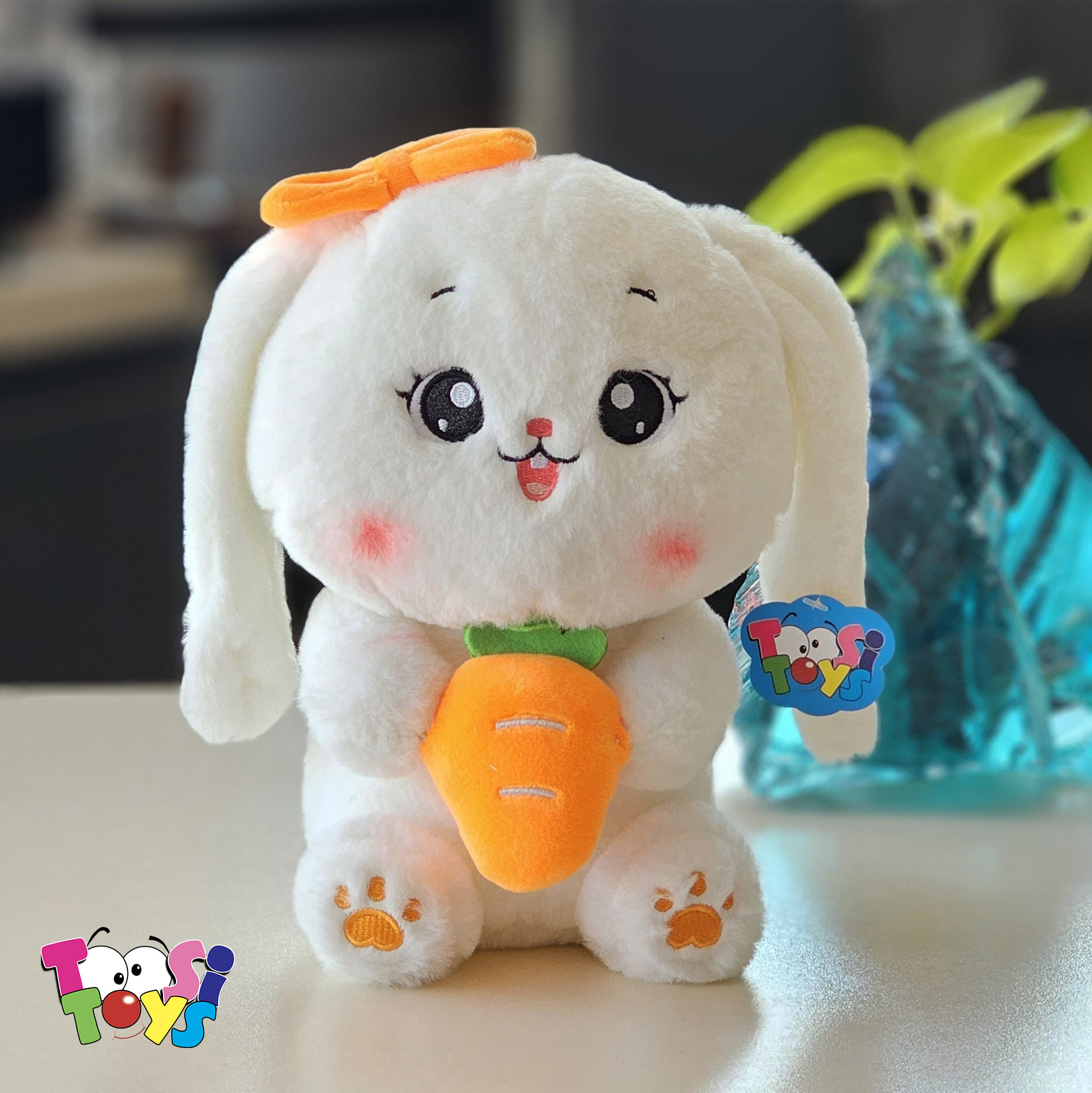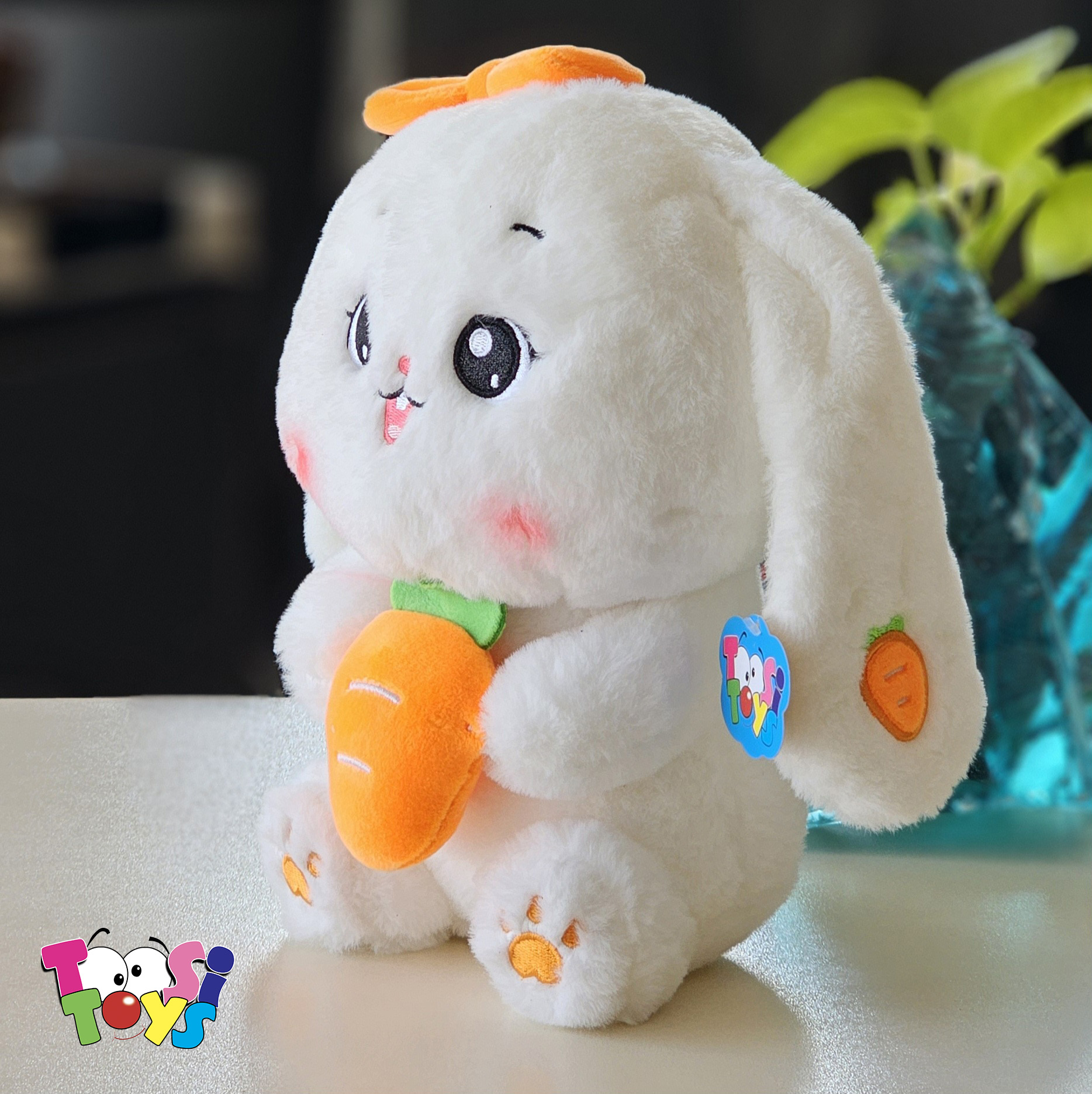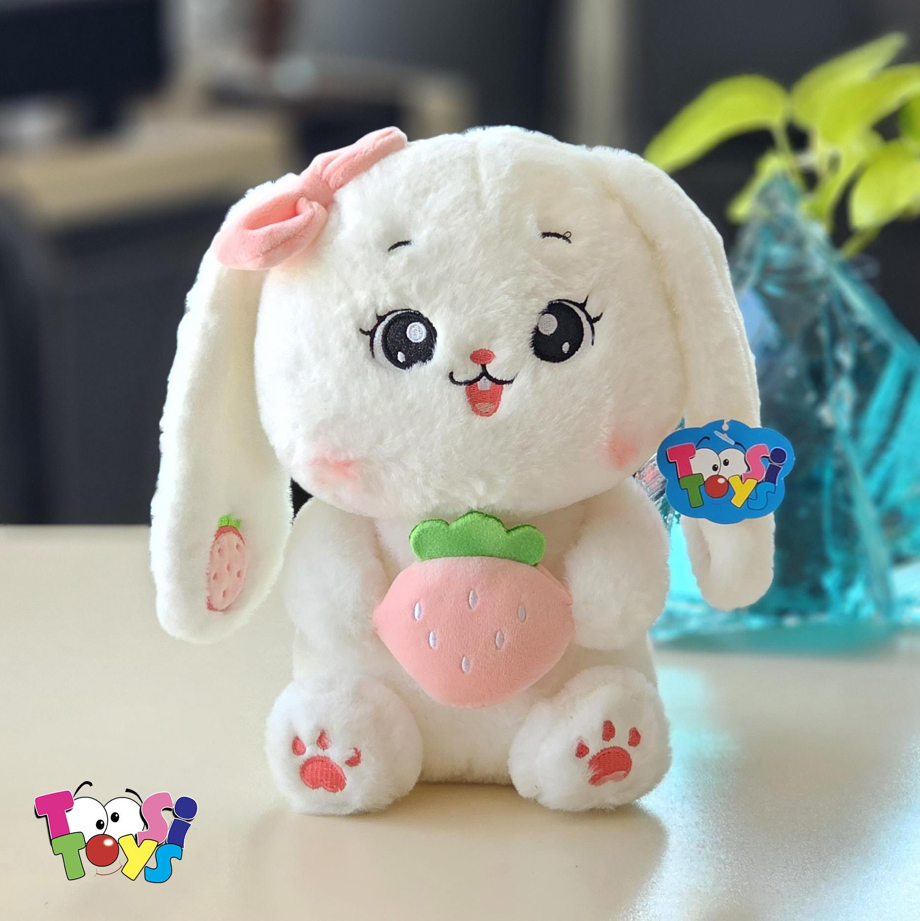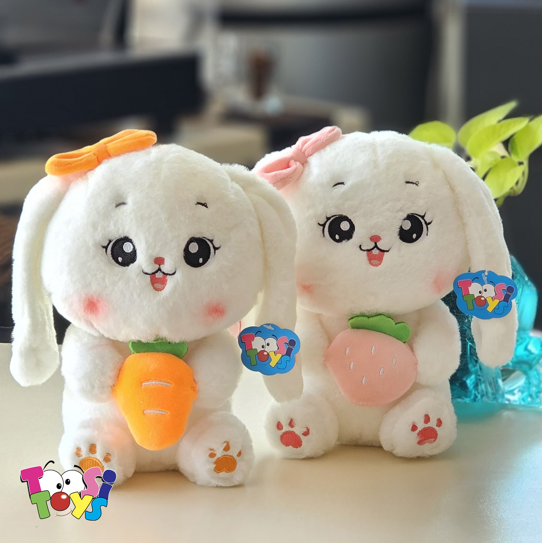 این خرگوش بامزه دارای دو طرح توت فرنگی و هویج است، که هر کدوم به تنهایی جذابیت خودش را دارد. جنس آن از پارچه با کیفیت و لطیف تولید شده است که باعث نرم بودن و بغلی تر شدن آن شده است.