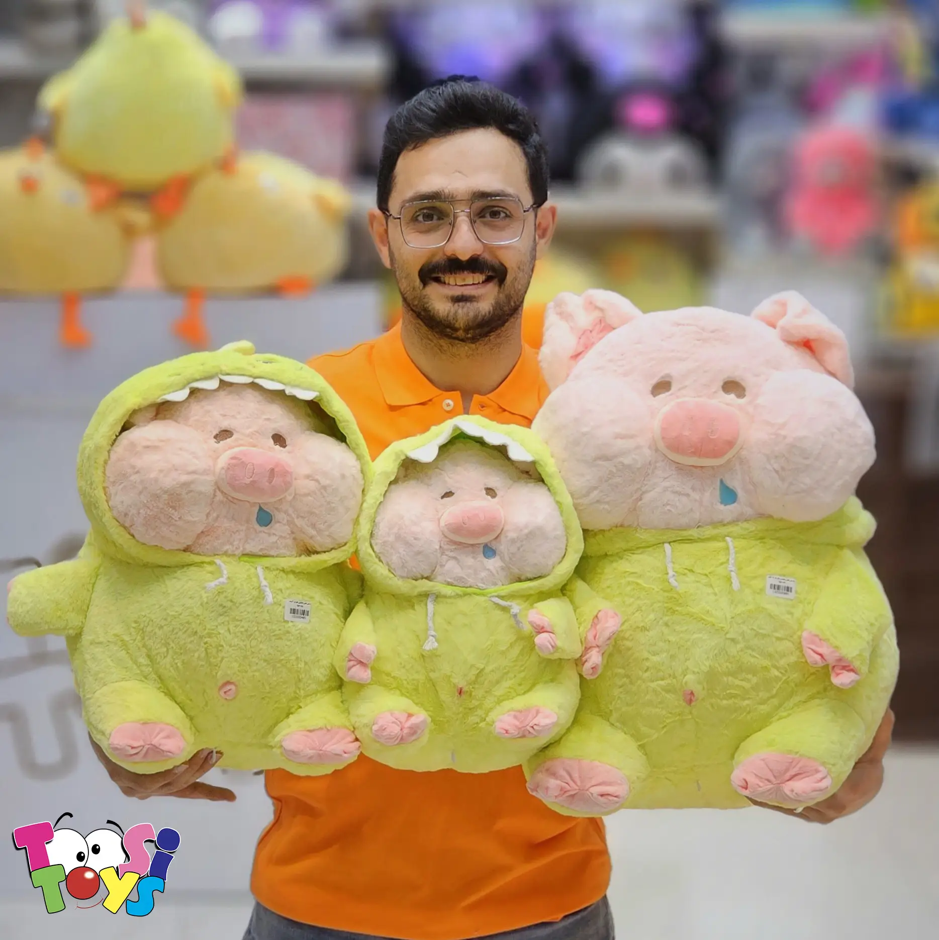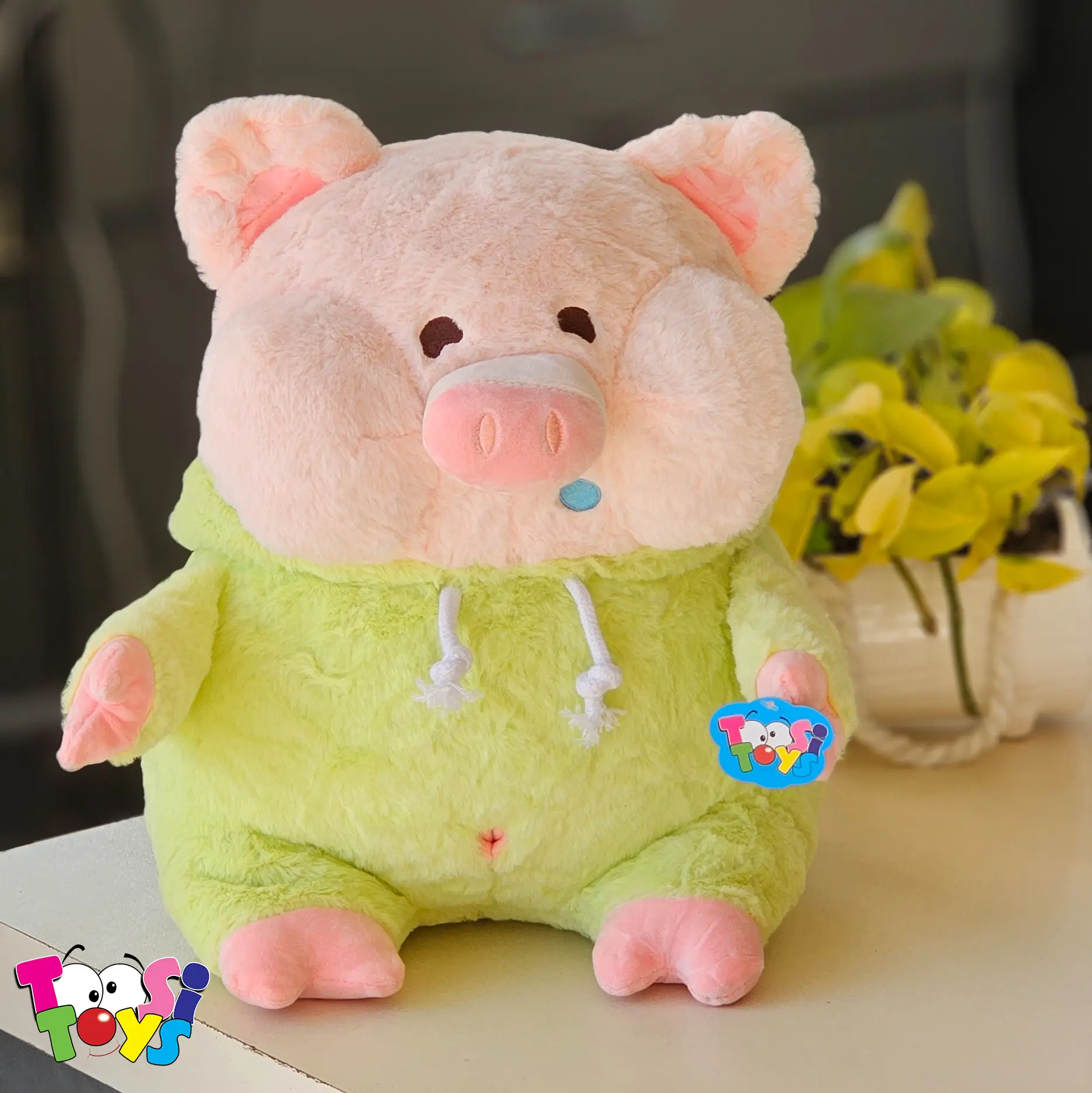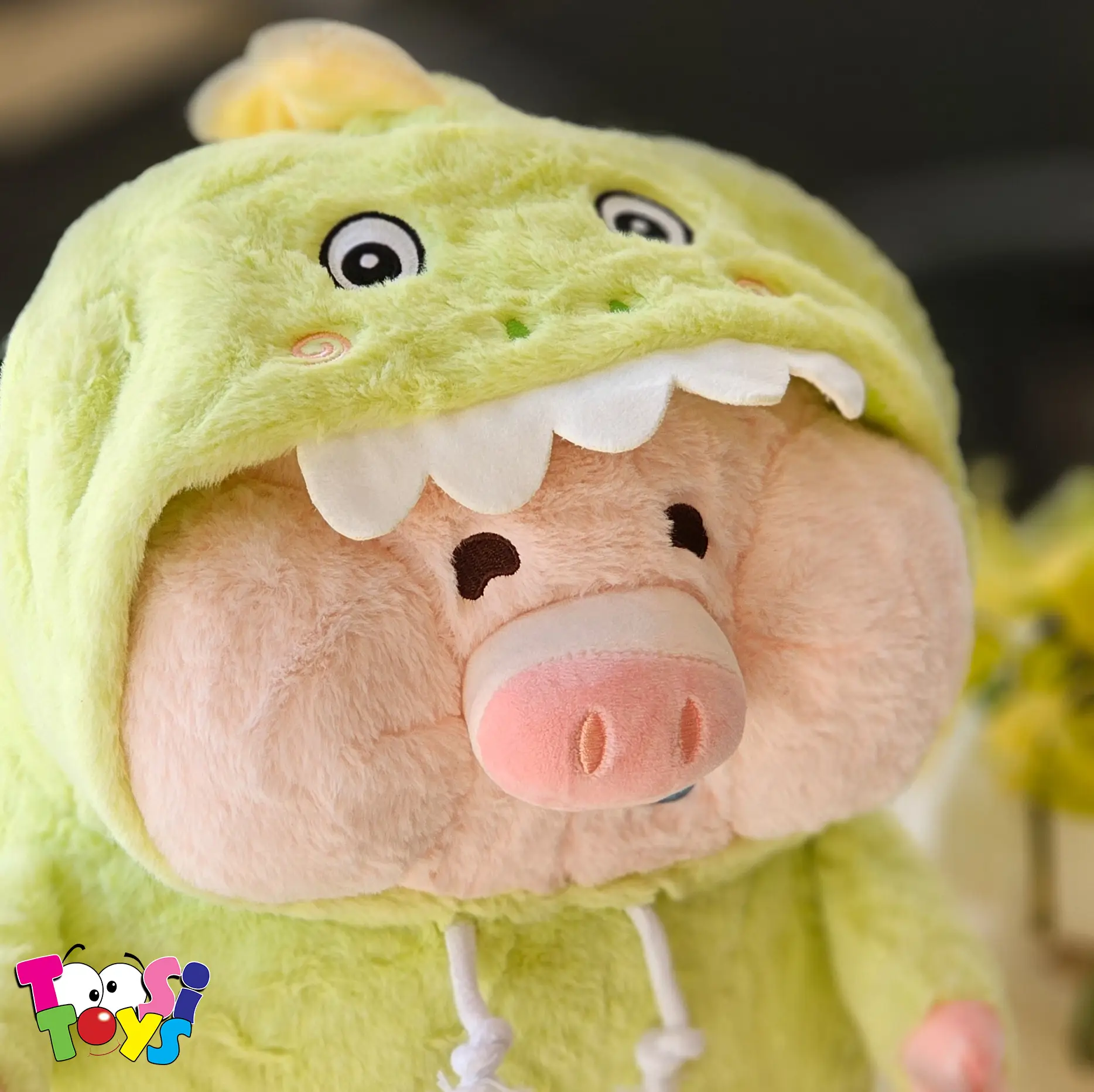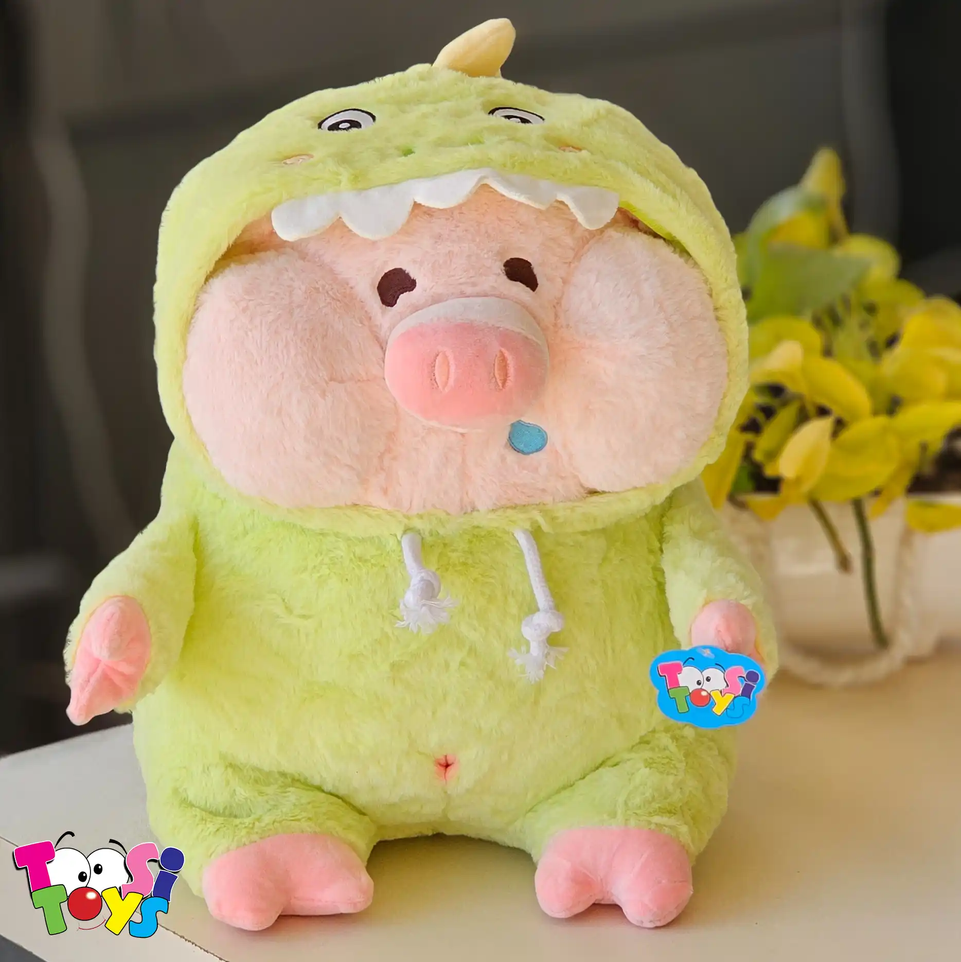 خوک لپیِ بامزه با لباس دایناسور سبز ترکیبی از ناز بودن و هیجان است! این عروسک نرم و با کیفیت، برای بچههایی که عاشق ماجراجویی و حیوانات هستن عالی است.