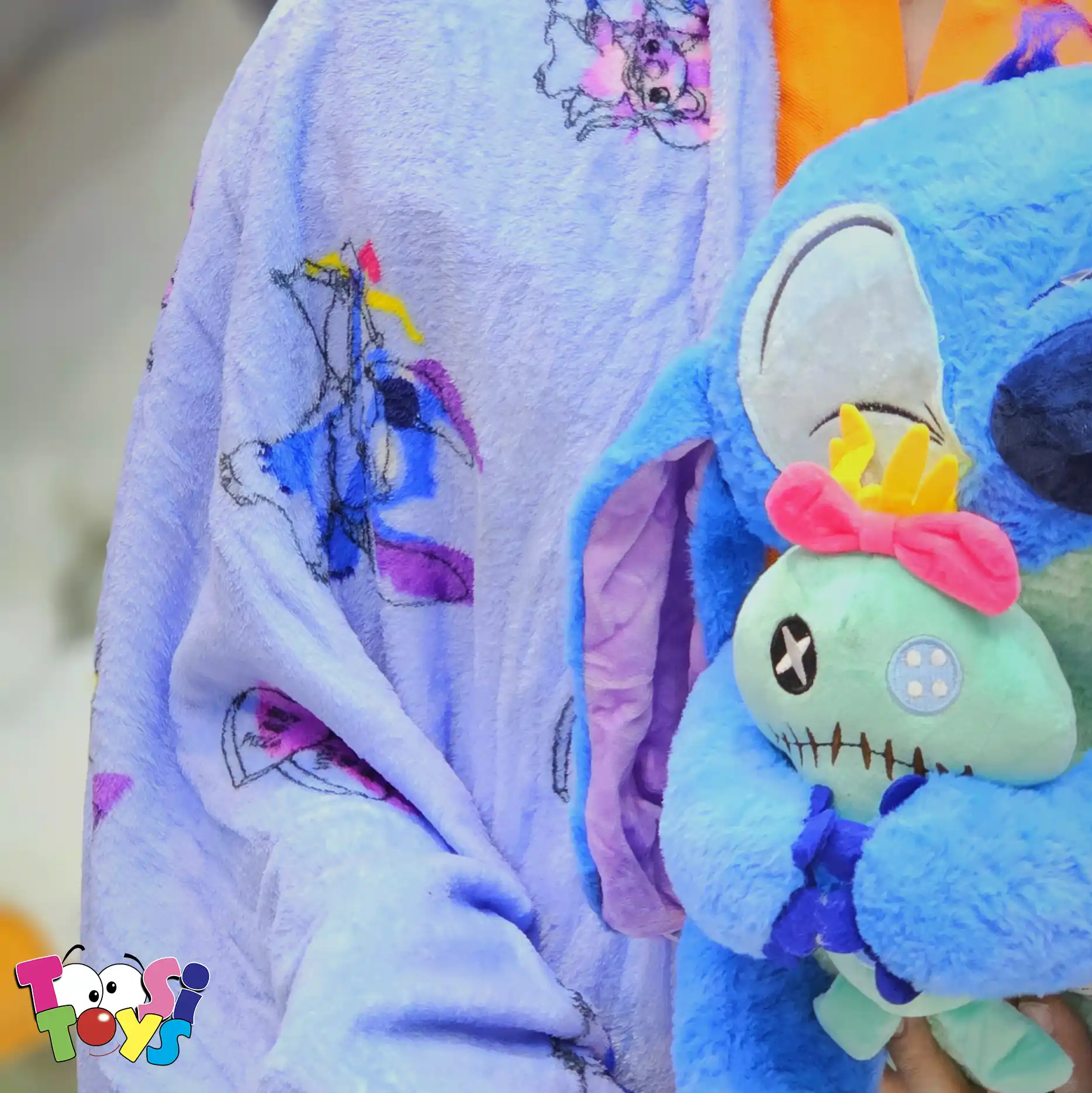 این استیچ فقط یه عروسک نیست، همون دوست آبیِ شیطون و بامزهست که همیشه دلت میخواست بغلش کنی💙 وقتی خستهای سرتو بذار رو شکم نرم و لطیفش، وقتی سردته بازش کن و تو پتوی بزرگش غرق شو! این عروسک بامزه حتی بعد از خارج کردن پتو هم به عنوان یک بالشت نرم استفاده میشود.