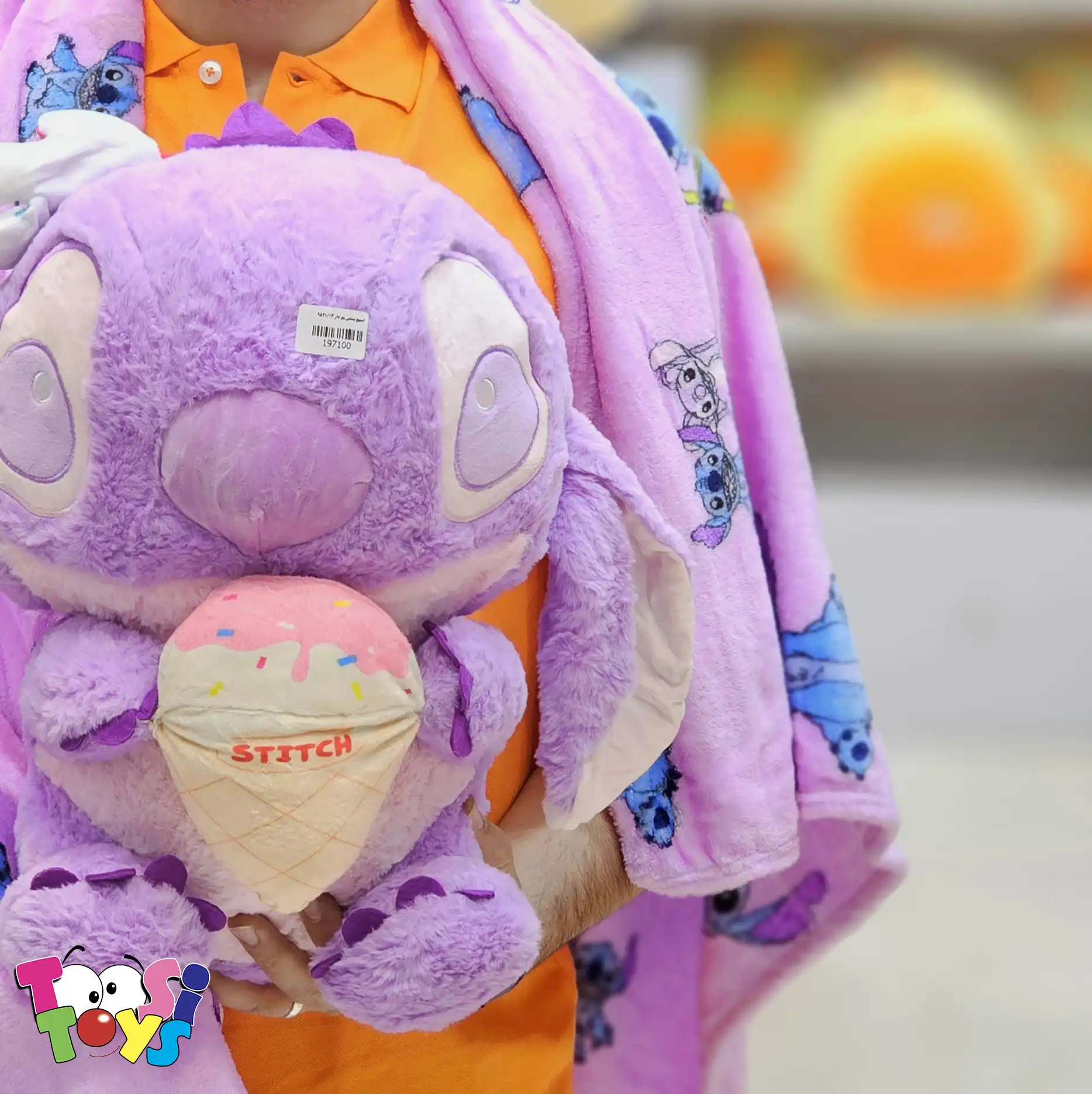 یه استیچ بامزه با بستنی تو دستش، انگار تو رویا بستنی میخوره، ۵۰ سانت عشقِ خنک و شیرین که میشه بالشت و پتوی تو، دیگه هیچ شبی بدون بغل استیچ و بستنی نمیمونی، این عروسک زیبا حتی بعد از خارج کردن پتو هم به عنوان یک بالشت نرم استفاده میشود.