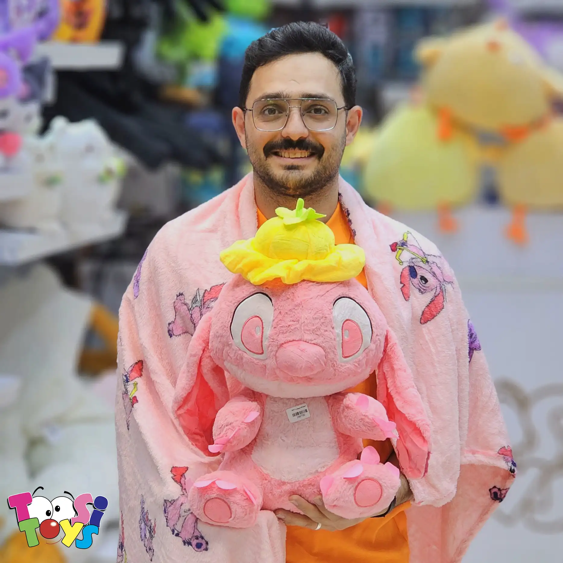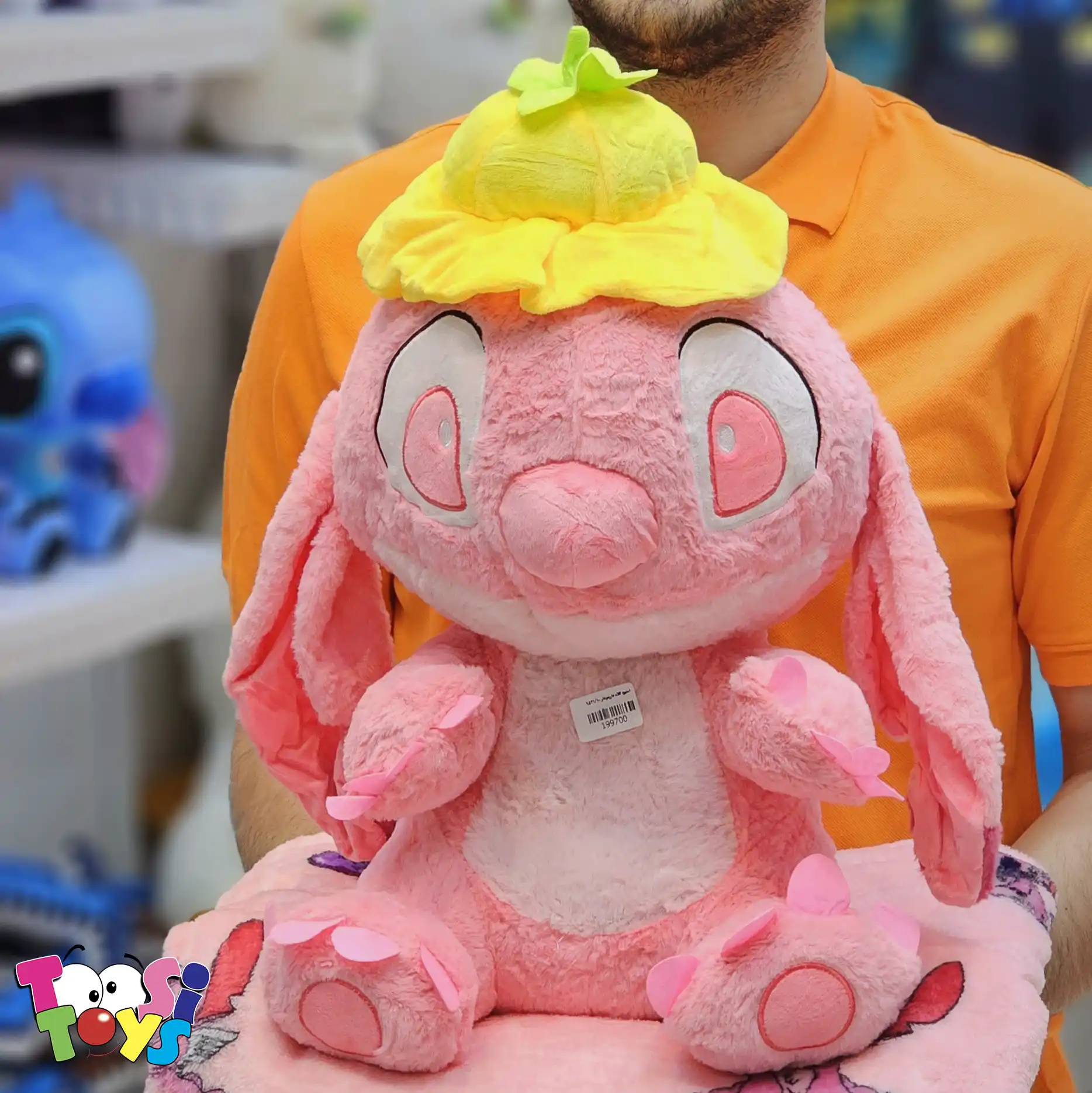این استیچِ کلاهدار فقط یه عروسک نیست، یک تیکه ابرِ که کلاه کشیده رو سرش و آماده تا بغلت کنه💙 سرتو بذار رو شکم نرمش و پتوی گرمش رو بنداز روت و بخواب… چون استیچ قول داده همیشه پیشت بمونه، این عروسک بامزه حتی بعد از خارج کردن پتو هم به عنوان یک بالشت نرم استفاده میشود.