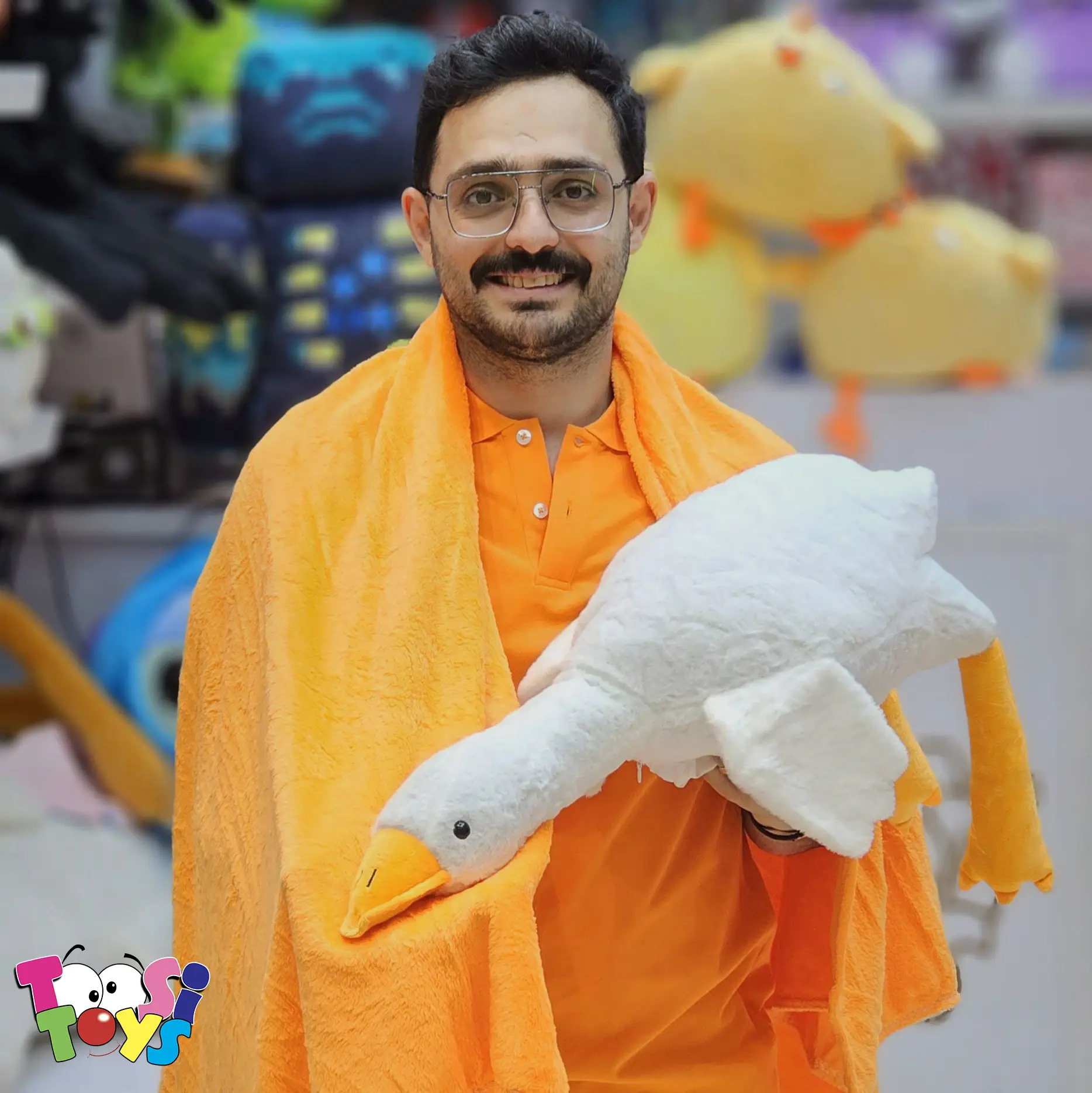 یه غاز کوچولو که خوابیده و فقط منتظره تا تو رو هم با خودش تو خوابهای شیرین ببره🌙🦢 وقتی بغلش میکنی انگار داری یک ابر نرم و بغل میکنی وقتی بازش میکنی داخلش یک پتوی گرم و پفی هستش که تا صبح ولت نمیکنه، این عروسک بامزه حتی بعد از خارج کردن پتو هم به عنوان یک بالشت نرم استفاده میشود.