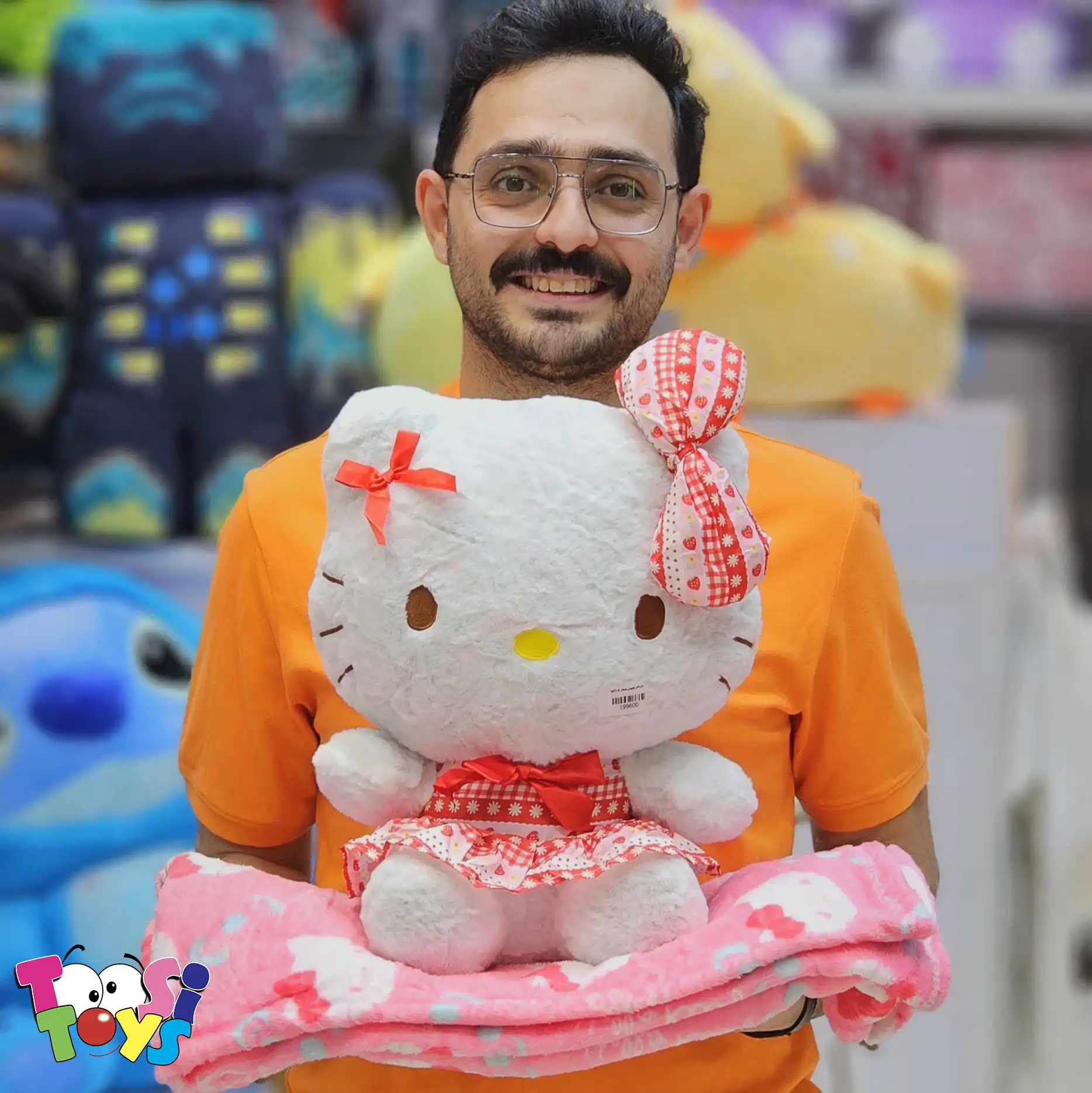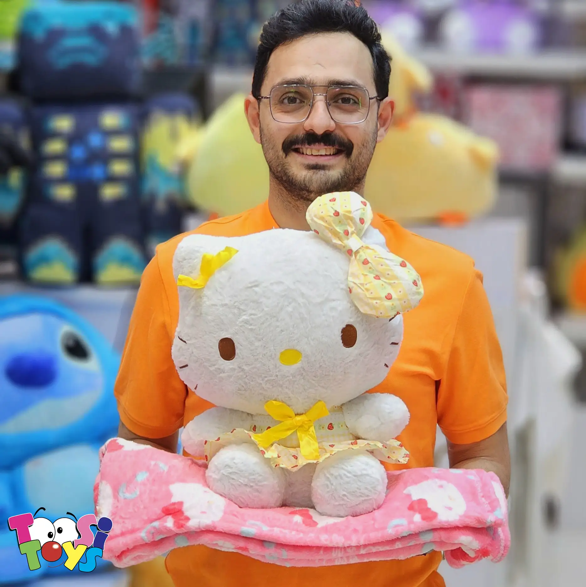 کیتی عزیزت رو بغل کن و تو آرامش بخواب! عروسک کیتی ۵۰ سانتیمتری که هم بالشت نرم و پفکیه، هم پتوی گرم و لطیف! حتی بعد از خارج کردن پتو هم عروسک هم چنان به عنوان بالشت نرم استفاده میشود. بهترین هدیه برای بچهها و حتی بزرگترهایی که عاشق کیتی هستن😻»